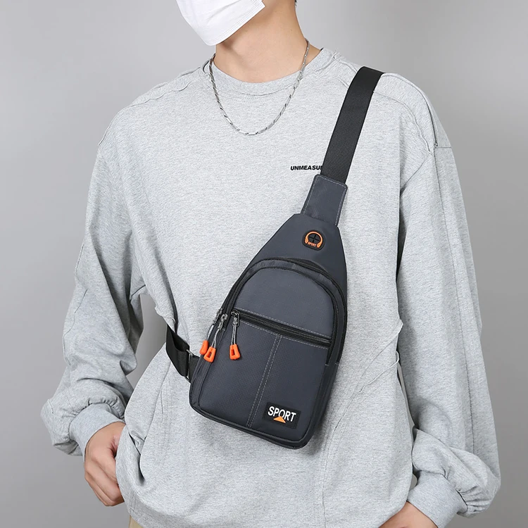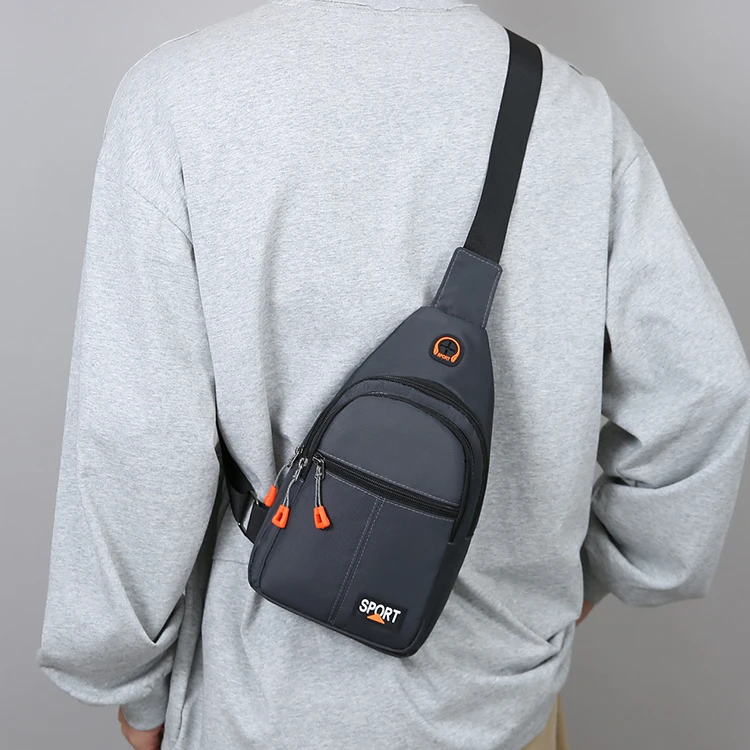 Men’s large capacity chest bag with headphone jack, adjustable shoulder strap, hands-free, suitable for outdoor sports during co